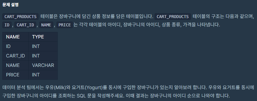 A와 B를 동시에 구입한 장바구니가 있는지 알아보는, 대표적인 연관분석 문제였다. SQL에서 연관분석을 해보리란 생각은 안 해봤는데 (맨날 R에서만 해봤음) 생각보다 간단하게 중첩쿼리문으로 해결했다.